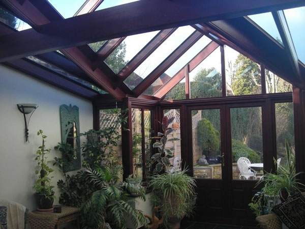 The beams of hardwood and the Pilkington k glass are spaced out evenly to allow plenty of light through to give this room a spacious look.